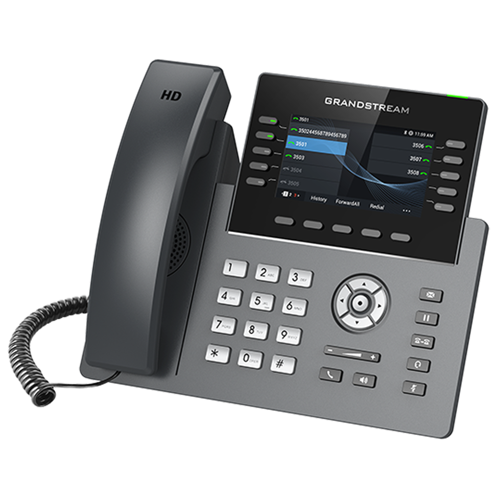 The GRP2615 features 40 multi-purpose keys (MPKs), integrated Wi-Fi, Bluetooth support, a color LCD with swappable face plates for easy logo customization and more and is supported by Grandstream’s Device Management System (GDMS).